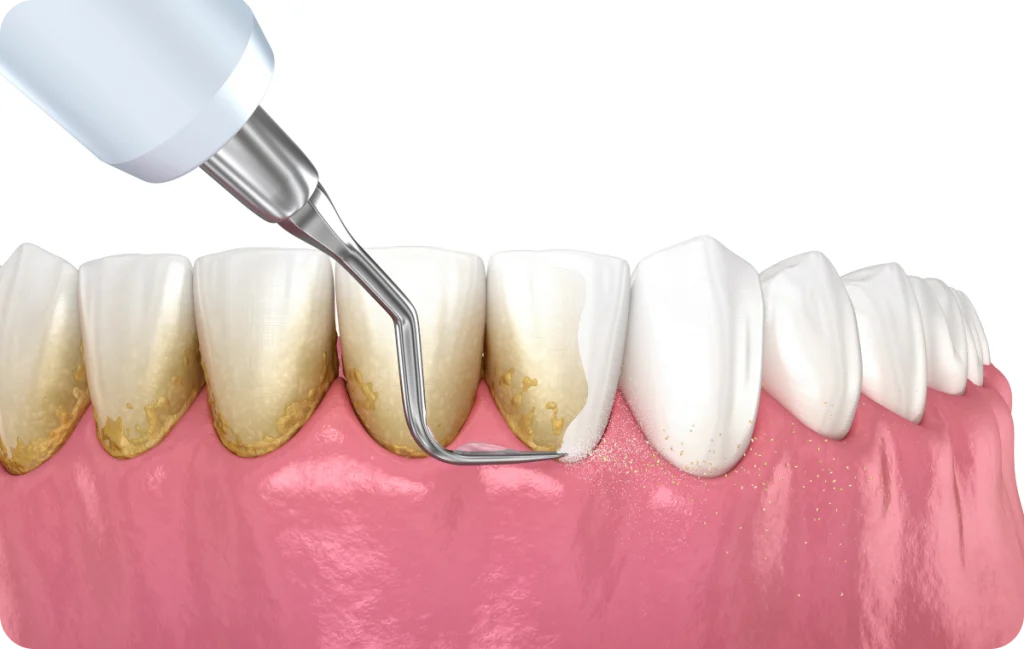 Lorsque la plaque et le tartre se sont accumulés sous la gencive, un nettoyage approfondi est nécessaire. Le détartrage élimine les dépôts visibles, tandis que le surfaçage ( ou assainissement) radiculaire nettoie les racines en profondeur. Cette étape est essentielle pour assainir le milieu buccal.