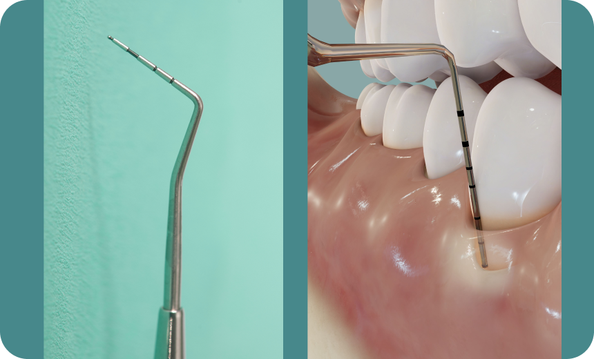 Le dentiste examine les gencives, mesure la profondeur des poches parodontales et évalue le niveau d’inflammation. Le praticien peut réaliser des photos et des radiographies afin de visualiser l’état de l’os de soutien.